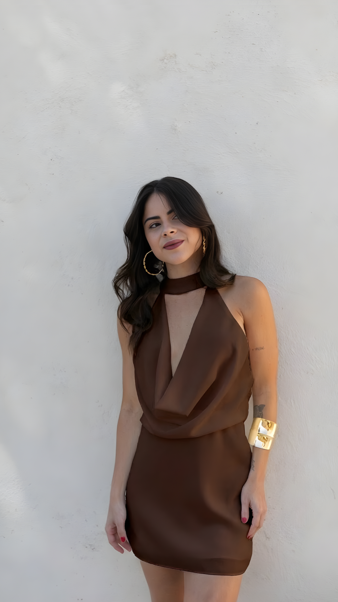 • Decote Drapeado Magnífico: O detalhe no busto confere um toque de glamour e sofisticação, valorizando o colo de forma delicada.