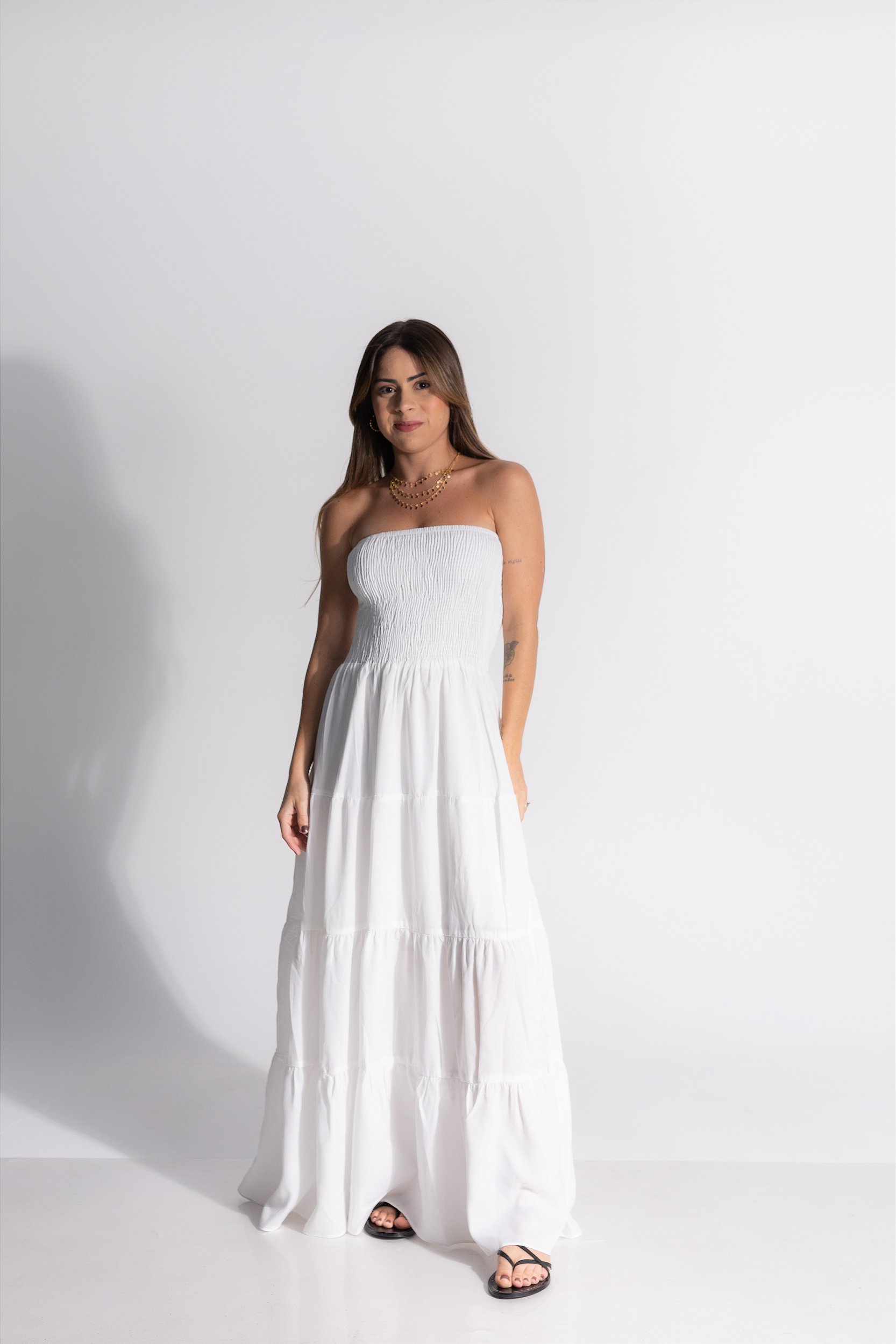 Conheça o Vestido/Saia Babi, o item mais amado da nossa loja e um verdadeiro must-have no seu guarda-roupa. Este best-seller é a peça perfeita para quem busca estilo e praticidade, podendo ser usado tanto como saia longa quanto como vestido midi, adaptando-se perfeitamente a qualquer ocasião.