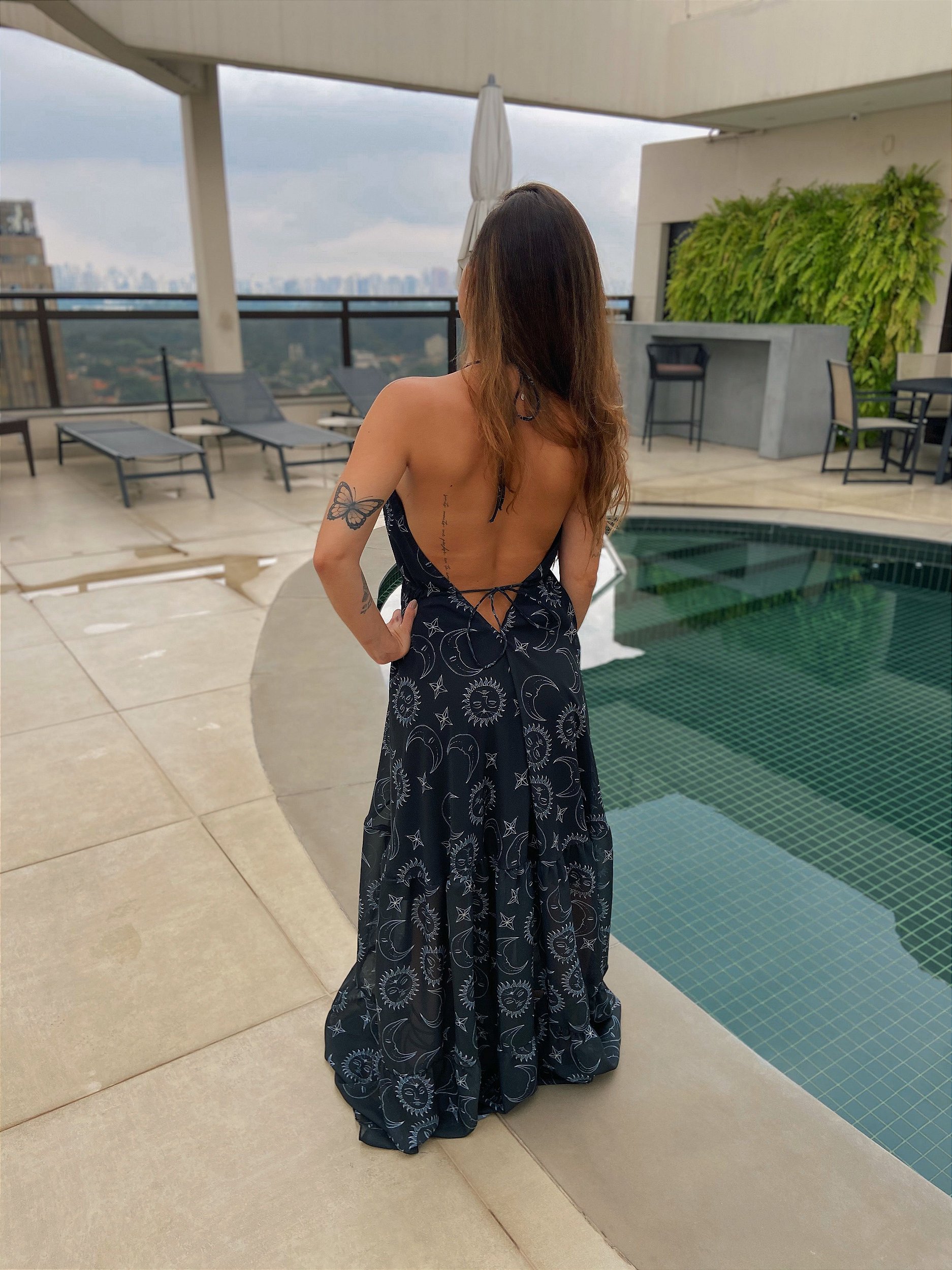 Tecido: Mousseline com forro.